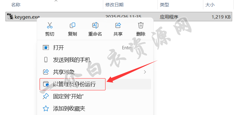 11.以管理员身份运行【keygen.exe】文件