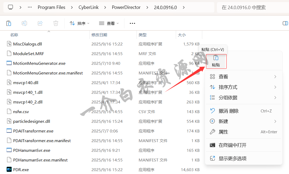 10.在打开的文件夹空白处点击右键,将第8步复制的文件,粘贴到此文件夹内