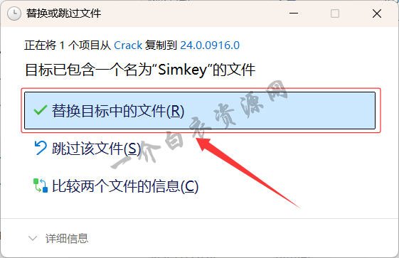 11.在弹出的窗口中选择【替换目标中的文件】
