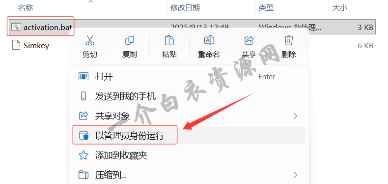 7.以管理员身份运行【activation.bat】文件(运行完成后会自动退出)