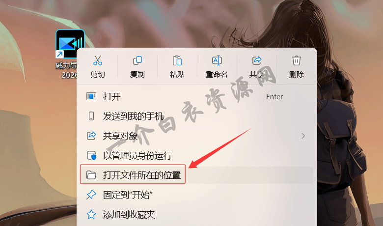 9.返回桌面,右键点击软件图标,选择【打开文件所在的位置】