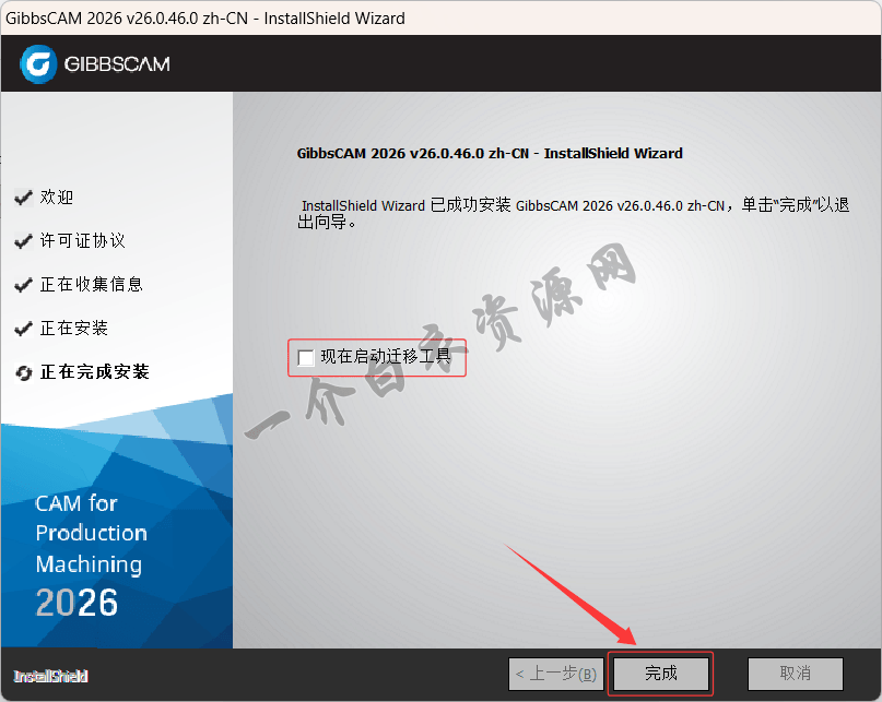 14.安装完成后,取消勾选【现在启动迁移工具】,点击【完成】