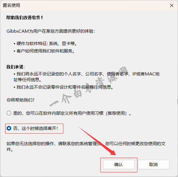 22.勾选【否,这个时候选择离开】,点击【确认】