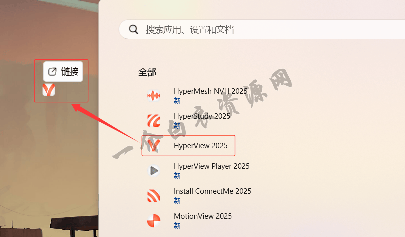 24.返回桌面,点击开始图标,点击全部,将【HyperView 2025】拖拽至桌面