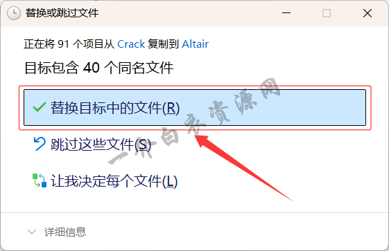 28.在弹出的窗口中选择【替换目标中的文件】