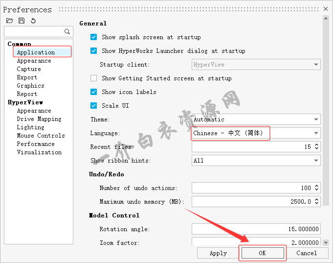 33.Language处切换为【中文简体】,点击【OK】