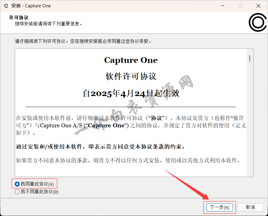 4.勾选【我同意此协议】,点击【下一步】