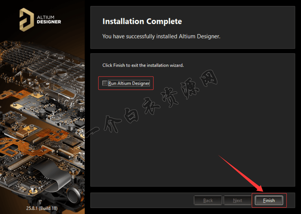 11.安装完成后,取消勾选【Run Altium Designer】,点击【Finish】
