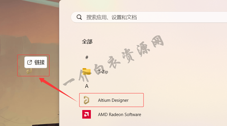 14.返回桌面,点击开始图标,点击全部,将【Altium Designer】拖拽至桌面