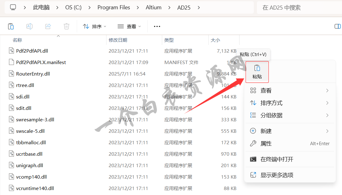 16.在打开的文件夹空白处点击右键,将第13步复制的文件,粘贴到此文件夹内