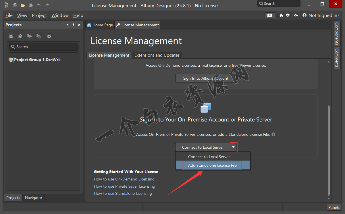 19.点击下图所示倒三角,选择【Add Standalone License File】