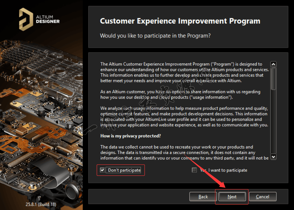 8.勾选【Don’t participate】,点击【Next】